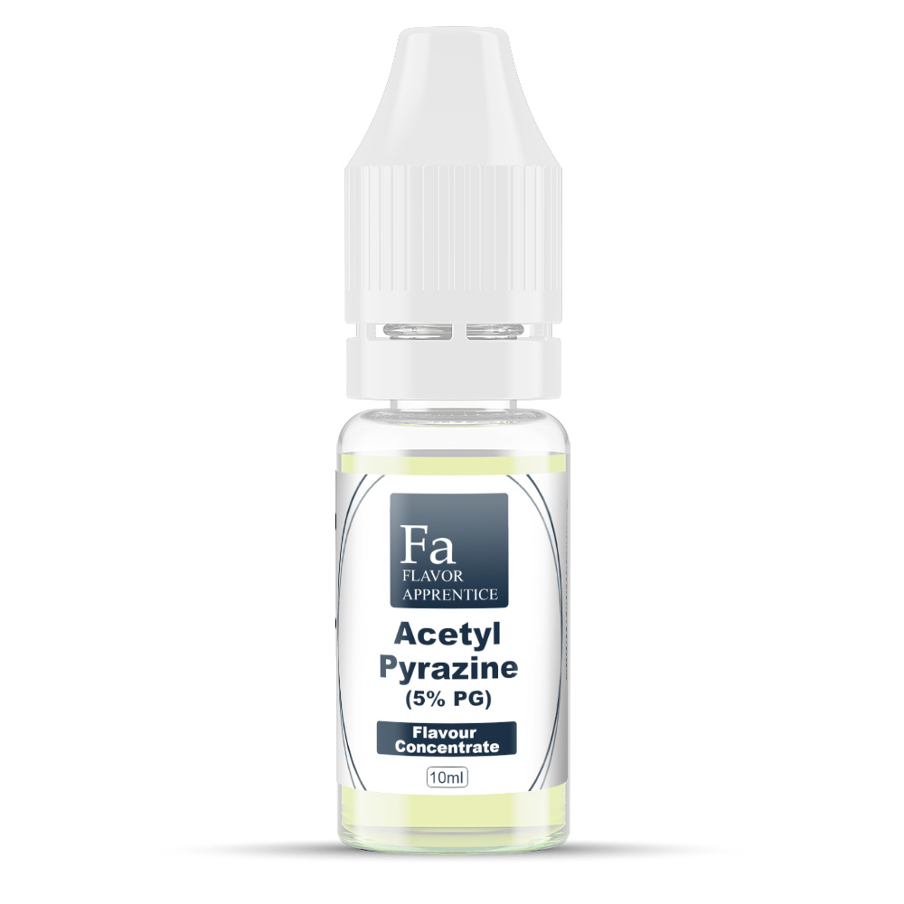 Perfumer’s Apprentice Acetyl Pyrazine 5 PG Concentrate is a flavour enhancer- good for blending into e-liquid recipes where it adds a roasted, nutty, bready and yeasty flavour with hints of popcorn and corn chips. The addition of a little of this versatile concentrate can really provide the perfect final flourish for many DIY mixes- particularly bakery and cakes. Try Perfumer’s Apprentice Acetyl Pyrazine 5 PG Concentrate as an additive in gingerbread or banana nut bread recipes- it will create a lovely depth to your e-liquids, but be sure to use it sparingly at first, as a little goes a long way. Although the Acetyl Pyrazine is already diluted to 10.00 ppm at 5% in Propylene Glycol, a little still goes a long way, so we’d recommend trying just a drop or two in your mix.